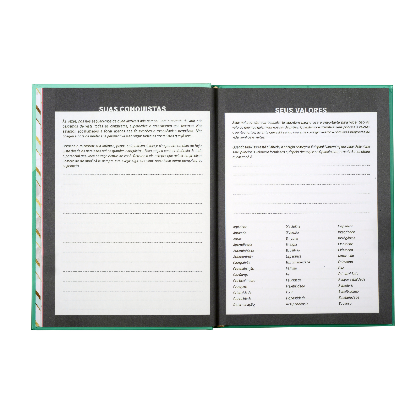 - Um diário – use-o como uma extensão dos seus dias, como um lugar seguro para explorar suas emoções, sentimentos e o seu dia a dia